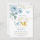 Dusty Blue Floral Our Little Butterfly is Turning One Invitation