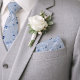 The refined dusty blue palette pairs beautifully with white or neutral shirts, making it ideal for garden weddings, coastal ceremonies, and fine art aesthetics.