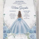 Dusty Blue Floral Princess Quinceañera 15 Anos All in One Invitation