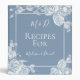 Fill the binder with Dusty Blue Floral Elegant Recipe Pages that you sent out to each shower guest. You can include the recipe sheets with every invitation and ask the guests to fill them out with their favourite recipes. As guests arrive either 3-hole punch the pages or simply slip them into 8.5 x 11 page protector sheets. This thoughtful and useful gift will bring such joy to the bride! She will love having tried and true recipes to cook for her groom.