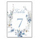 Dusty Blue Floral Spring greenery Wedding Table Number