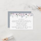 Beautiful watercolor garden flowers and foliage bouquet in chic shades of blush pink, violet, crème, blue and green, wedding details card. Personalize text, font style, colour and size. Back of card, shown in dusty blue, can be customized.