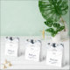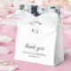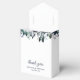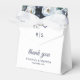 Modern wedding favour boxes featuring elegant blue watercolor flowers, your initials, the saying "thank you", your names, and the wedding date.
