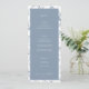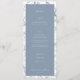 Elegant vintage garden floral frame in dusty blue, menu and thank you card. Features, white typography with menu on front and thank you message on back.