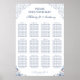 This elegant wedding seating chart features soft dusty blue watercolor florals, delicate blush accents, and romantic vintage scrollwork for a timeless reception look. The clean poster layout helps guests quickly find their table while adding a polished decorative touch to your wedding venue. Its refined blue palette pairs beautifully with classic, formal, garden, and romantic wedding themes. A beautiful choice for couples creating a coordinated reception stationery suite with a graceful and sophisticated style.
