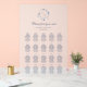 Elegant wedding seating chart printed on crystal-clear acrylic. Features a soft dusty blue floral wreath with monogram and refined calligraphy text. Perfect for displaying guest table assignments at your reception. Fully customizable with names, date, and seating list. Ideal for modern, classic, and garden weddings. Looks stunning on an easel with light passing through for a luxury finish.