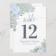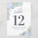 Dusty Blue Floral Wedding Table Number Card Large