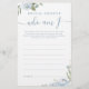 Who am I bridal shower game cards, favourite memory with the bride game, features romantic watercolor floral in dusty blue and sage green, and stylish modern script, simple and elegant, great for modern boho bridal shower, botanical garden wedding parties.