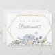 Will You Be My Bridesmaid Invitation. Romantic watercolor dusty blue florals and leaves on gold geometric frame.