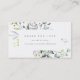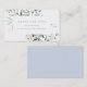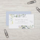 This design features dusty blue florals and eucalyptus leaves in shades of green.