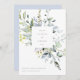 This design features dusty blue florals and eucalyptus leaves in shades of green.