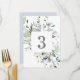This design features dusty blue florals and eucalyptus leaves in shades of green.