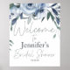 Dusty Blue Flowers Elegant Bridal Shower Poster