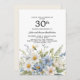 Beautiful country-style 30th wedding anniversary invitation with pretty dusty blue flowers and white daisies.
