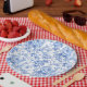 Dusty Blue French Toile Roses Floral Paper Plates