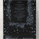 Dusty blue glitter pine, confetti black wedding all in one invitation