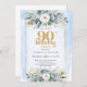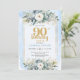 Dusty Blue Gold Frame Modern 90th Birthday Invite