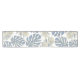 Dusty blue, gold palm and monstera tropical leaves short table runner