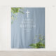 Dusty Blue Greenery Baptism Photo Backdrop Tapestry