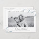 Modern chic watercolor dusty blue botanical foliage greenery design with couples photo, simple and elegant, inform your wedding guests the updated information with this photo change the date wedding postponement card, great for modern wedding, rustic wedding, and botanical garden wedding in spring and summer.