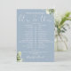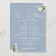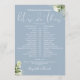 This stylish dusty blue greenery wedding schedule timeline can be personalized with your wedding details in chic typography. Designed by Thisisnotme©