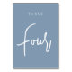 Simple and chic table number cards in Dusty Blue and white make an elegant statement at your wedding or event. Design features "table [number]" in an eyecatching mix of classic serif and handwritten script lettering. Design repeats on both sides. Individually numbered cards sold separately; order each table number individually from our collection.