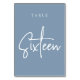 Dusty Blue Hand Scripted Table SIXTEEN Number