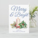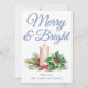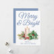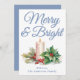 Dusty Blue Handwritten Script Merry & Bright Holiday Card