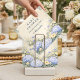 A refined dusty blue hydrangea design framed in an elegant baroque-inspired composition. Voluminous hydrangea clusters in soft powder and periwinkle tones are paired with creamy ivory florals and muted sage greenery, creating a balanced, symmetrical garden frame. The warm parchment-style background adds a subtle antique touch while keeping the overall look airy and sophisticated. Ideal for a timeless celebration with a romantic, elevated aesthetic.