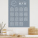 We're loving this trendy, modern dusty blue reception seating chart! Simple, elegant, and oh-so-pretty, it features a hand drawn leafy wreath encircling a modern wedding monogram. It is personalized in elegant typography, and accented with hand-lettered calligraphy. Finally, it is trimmed in a delicate frame. Designs to allows for 15 tables of 8, allowing for up to 120 guests. Veiw suite here: https://www.zazzle.com/collections/dusty_blue_leafy_crest_monogram_wedding_invitation-119130199045408312 Contact designer for matching products to complete the suite, OR for color variations of this design. Thank you sooo much for supporting our small business, we really appreciate it!