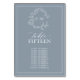 Create the perfect reception setting! We're loving this trendy, modern dusty blue wedding table numbers! Simple, elegant, and oh-so-pretty, it features a hand drawn leafy wreath encircling a modern wedding monogram. It is personalized in elegant typography, and accented with hand-lettered calligraphy. Finally, it is trimmed in a delicate frame. This version the number is spelled out and allows to inclusion of up to 10 guest names, Veiw suite here: https://www.zazzle.com/collections/dusty_blue_leafy_crest_monogram_wedding_invitation-119130199045408312 Contact designer for matching products to complete the suite, OR for colour variations of this design. Thank you sooo much for supporting our small business, we really appreciate it!