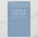 This lovely dusty blue lights Couple Name Game bridal shower game sheet is simple and charming - perfect for any shower. This fun and easy game is sure to bring lots of laughter to any bridal shower! Simply give a sheet to each guest (don't forget the pens) and let the fun begin! You'll be amazed at how many long words people come up with using the names of the bride and groom. In seconds you can see how your game sheet will look. Simply select Personalize this Template and type in the bride's name and the groom's name.