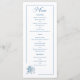 This elegant dusty blue wedding menu features a clean white background, a delicate line art rose in the corner, and a graceful calligraphy script title. Its minimalist layout beautifully highlights your reception dishes, making it perfect for showcasing wedding dinner courses, reception meal choices, and thoughtfully planned catering selections. The subtle floral illustration adds a romantic touch while keeping the focus on the food, creating a stylish and modern piece for any celebration. Ideal for couples who appreciate soft botanical details and a cohesive dusty blue wedding menu aesthetic, this design elevates the presentation of your carefully curated wedding meal.