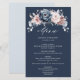 Dusty Blue Mauve Rose ardoise Floral Mariage Menu
