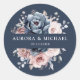 Dusty Blue Mauve Rose Pink Slate Floral Wedding C Classic Round Sticker