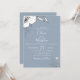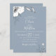Drawn meadow flowers and foliage in white and soft grey on light dusty blue background , wedding invitation. Customize text, font style, colour and size.