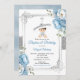Dusty Blue Mexican Boy Baptism & Birthday Silver Invitation