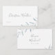 Modern chic minimal watercolor botanical foliage greenery design in dusty blue colour, and couples names on the back, simple and elegant, great for modern wedding, rustic wedding, and botanical garden wedding.