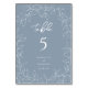 Dusty Blue Minimal Leaf Mariage Numéro de table