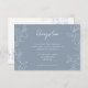 This dusty blue minimal leaf wedding reception enclosure card design perfectly embodies a modern romantic aesthetic. Featuring a classic blend of dusty blue background with minimal white leaf patterns gracefully complemented by a simple calligraphy script paired with an understated serif font. The result is a perfectly polished feel for your wedding, ensuring every detail reflects the elegance of your love story. Explore our curated selection of coordinating invitations, save-the-dates, enclosure cards, as well as ceremony and reception decor in the Dusty Blue Minimal Leaf Wedding Collection. The collection provides effortless options for presenting a truly beautiful and memorable marriage celebration. Whether your event graces the spring, summer, fall, or winter, the timeless vintage feel of these designs promises a charming and enchanted way to honour your unique journey together. We hope you fall in love with this collection as much as we have. For any questions or special requests for our designs, please do not hesitate to reach out. We are delighted to help in any way possible.