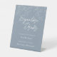 Dusty Blue Minimal Leaf Wedding Signature Drinks Pedestal Sign