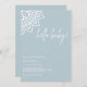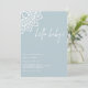 "Hello Baby" elegant script font featuring a minimalist boho design with a partial mandala as an accent to the top left corner. Colour is a dusty blue theme baby shower invitation.