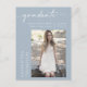 Yay! She finally graduated from school either from high school, college/university, tech school, or a graduate program so now it's time to inform family and friends that she did it! Celebrate one of her life's precious moments and send out this graduation announcement postcard. This postcard features elegant modern minimalist graduation announcement featuring a beautiful calligraphy script on a dusty blue background and the graduate's photo. Just customize and replace the text and photo in the personalization box.