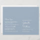 Un programme de mariage bleu et poussiéreux. Ajoutez les détails de la cérémonie spéciale du mariage dans une typographie chic et élégante. Plier main pour créer un beau programme de mariage plié. Conçu par Thisisnotme©