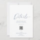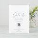 This elegant wedding details card features a crisp white background with soft dusty blue text in a clean, modern layout. A stylish script heading and built-in QR code guide your guests to your wedding website for all the important info—venue, accommodations, schedule, and more. Perfect for classic and romantic wedding styles.