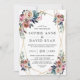 Dusty Blue Misty Rose Floral Gold Wedding Invitation