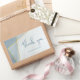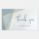 These simple, modern wedding thank you stickers feature a dusty blue colour theme with calligraphic elements, asymmetric gold frame accents, and marble texture appearance - by katz_d_zynes