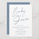 Dusty Blue Modern Handwritten Script Baby Shower Invitation