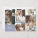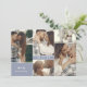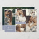 Double sided save the date card with a clean collage of five photos on one side with your initials and wedding date, and a larger photo on the other with more information about your wedding. Modern save the date card with a minimalist design, elegant fonts, and a photo collage. White and dusty blue save the date card with a clean photo design, your initials, and wedding date in white fonts.