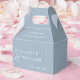 This dusty blue minimalist monogram wedding favour box can be personalized with your information in modern typography. Designed by Thisisnotme©
